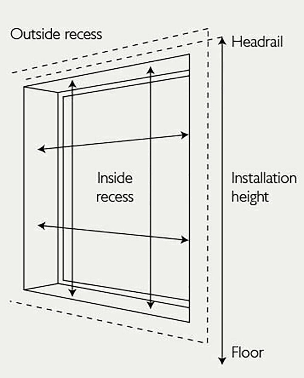 All Blinds are made to recess, The overall size includes blind and fittings the blind will be approx. 3cm smaller than the size ordered.